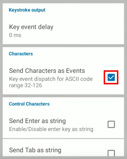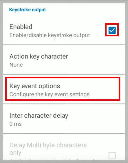 Прокрутите вниз до параметра Keystroke output и убедитесь, что он включен (Enabled) и выберите параметр Key event options.